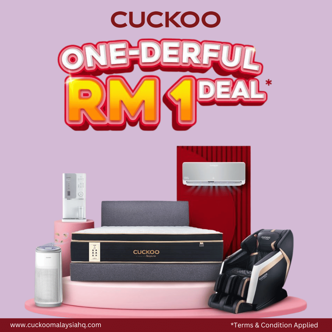 Enjoy renting any Cuckoo product with just RM1 registration fee for the first month – Exclusive for existing Cuckoo customers.