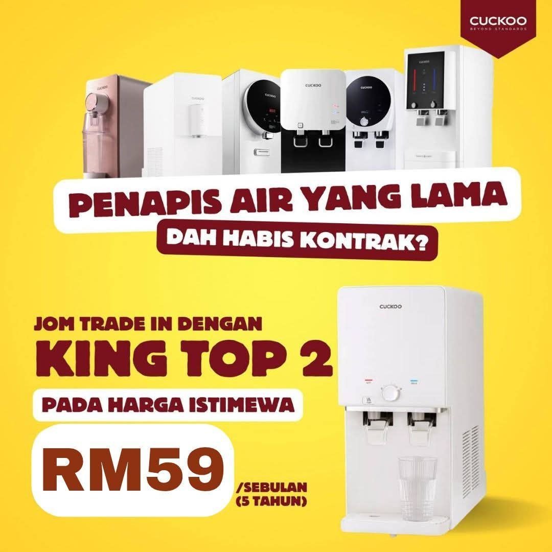Trade-in your old water purifier for the Cuckoo King Top 2 at a special price – Only RM59/month.